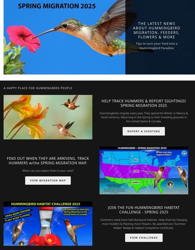 Spread Hummingbird Awareness on Social Media & Delight the Viewers. Spring / Fall Migration Tracking & Report Sightings.